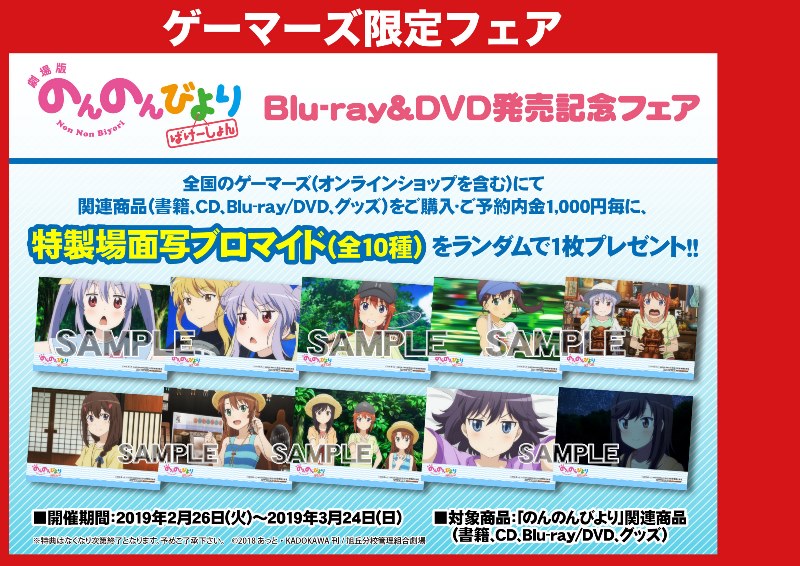 「劇場版のんのんびより ばけーしょん」Blu-ray&DVDの発売を記念して、全国のゲーマーズにて限定フェアの実施が決定!