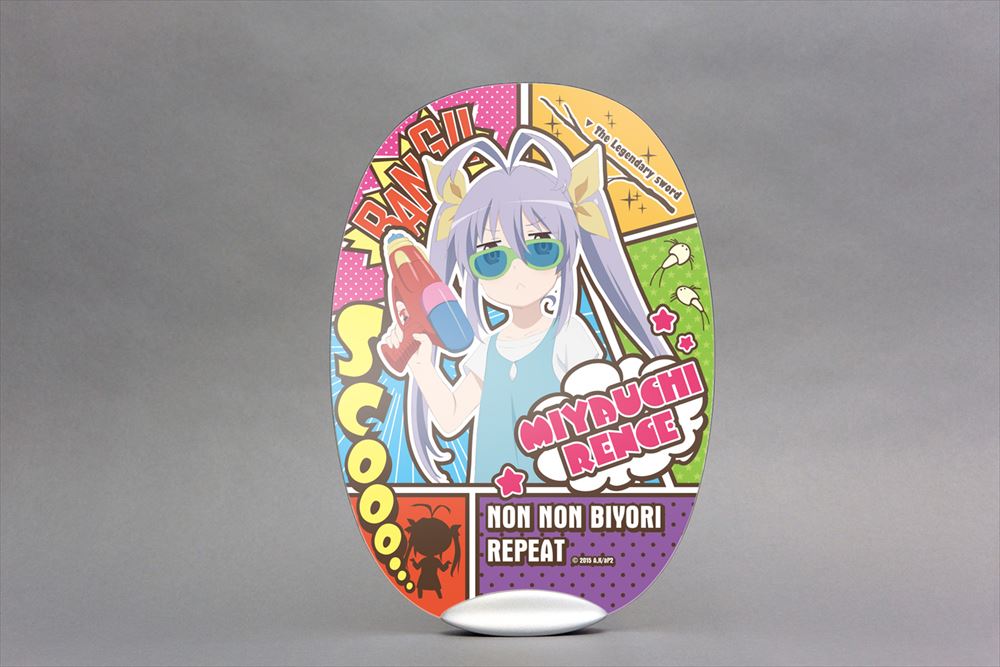 自立型デスクトップうちわ「Solano」を商品化!主人公の宮内れんげを全面に推し出したかわいいデザインです。アメコミ風な背景にれんちょんが配置され、彼女のかわいらしさを惜しみなく表現したデザインとなっております。