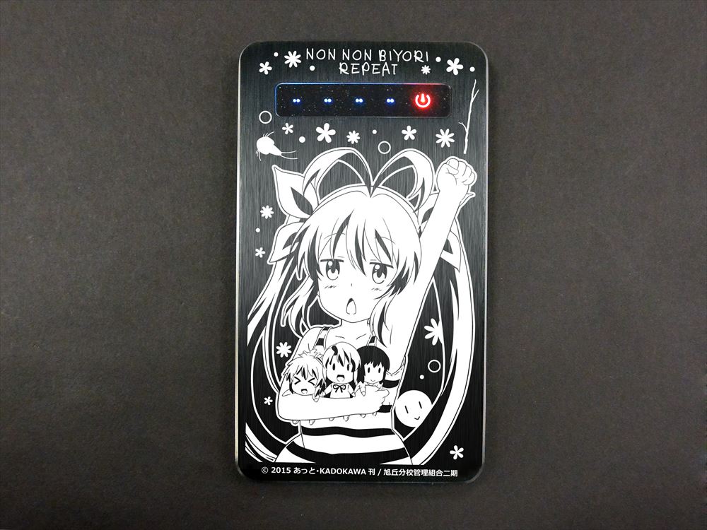 「宮内れんげ」をデザインしたモバイルバッテリーが登場です!バッテリーは4000mAhの大容量! 多くのスマートフォンで約2回分のフル充電が可能です。iPhone、Android スマートフォン各種、携帯ゲーム機などに対応した USB コネクタも付属しておりますので、すぐに使用できます。