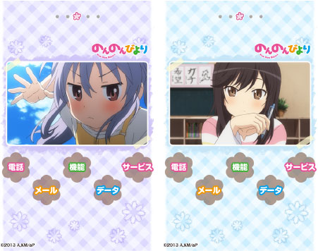 携帯&スマホ公式サイト「アニメ&ゲームきせかえ」にてのんのんびよりの携帯きせかえコンテンツが登場しちゃいます♪ ※商品画像はアンドロイド版です