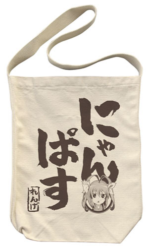 にゃんぱすの文字と「れんげ」がプリントされた、キャンバス生地のショルダートート!長めのショルダーベルト、スナップボタン、パスケースや携帯電話を入れられる便利な内ポケットなど、機能性も抜群!イベントやお買い物で活躍まちがいなしの定番アイテムです!